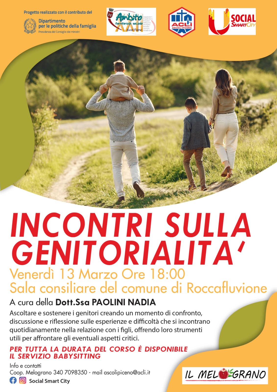 Si informa che il giorno Venerdì 13 Marzo alle ore 18:00 presso la sala consiliare del Comune di Roccafluvione si svolgerà un incontro sulla genitorialità.